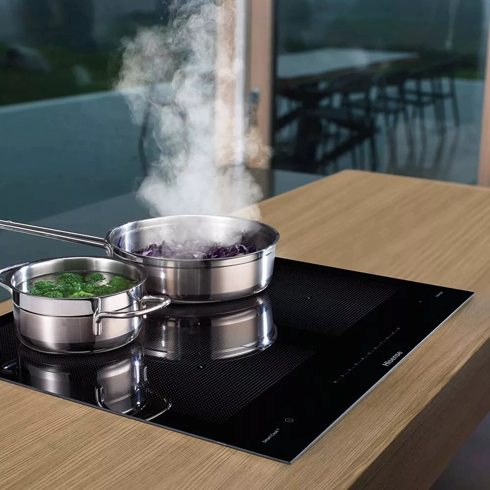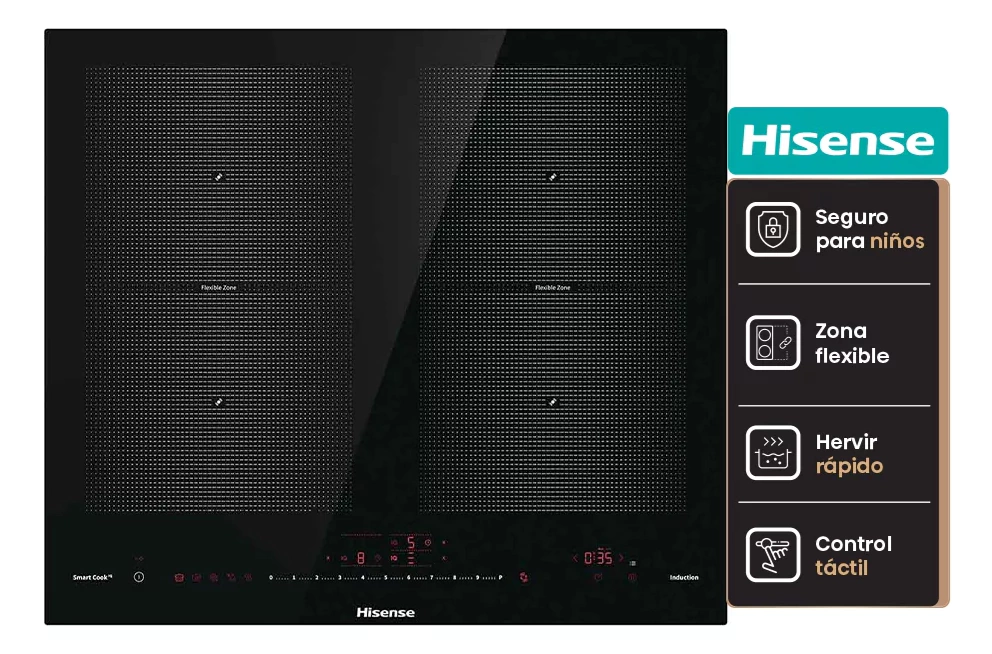 Tiene dos zonas conectadas verticalmente que se fusionan en una gran superficie de cocción, lo que permite gestionarlas en conjunto.