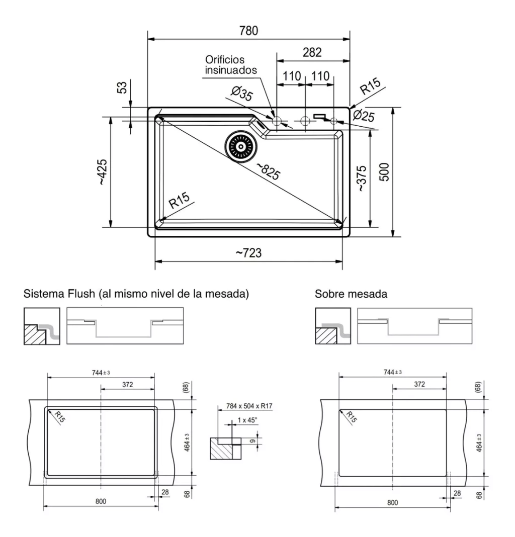 Sistema Flush, Sobre mesada |