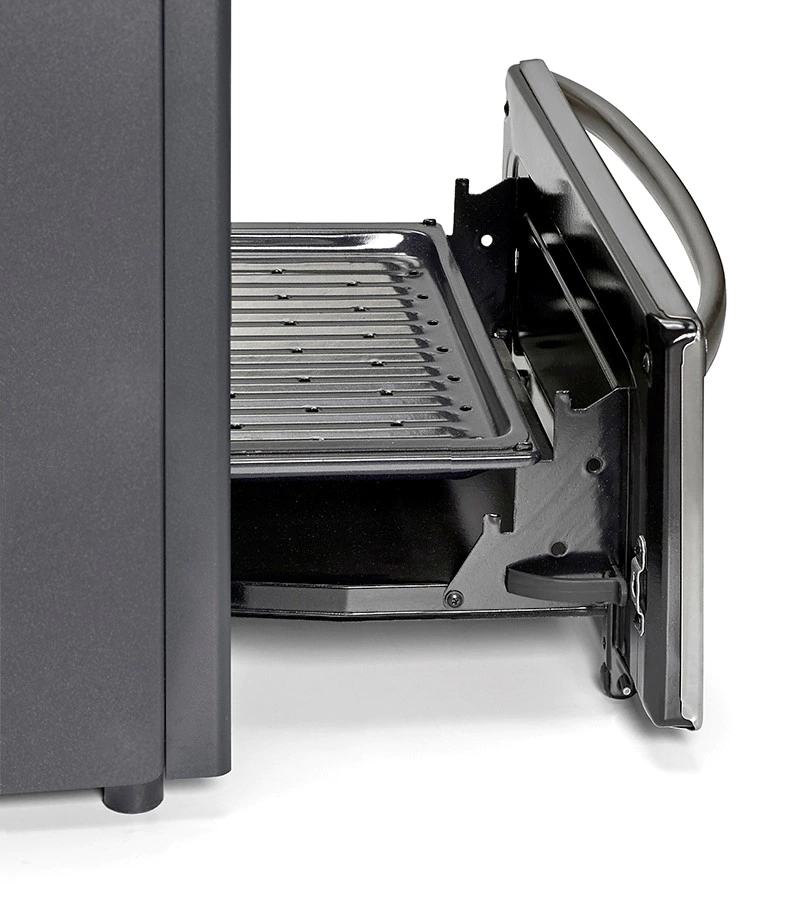 - Parrilla-Grill independiente: extraíble, con 3 posiciones y bandeja desgrasadora.